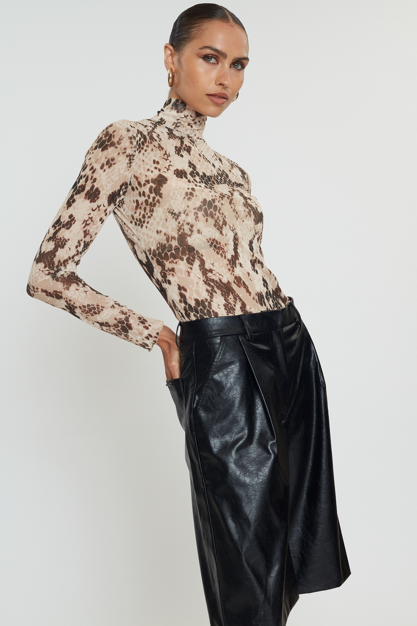 KEISI TULLE TOP | BEIGE SNAKE